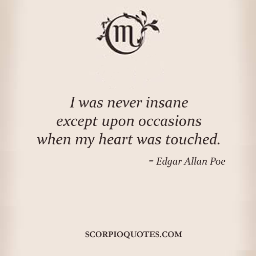 I was never insane except upon occasions when my heart was touched - Edgar Allan Poe